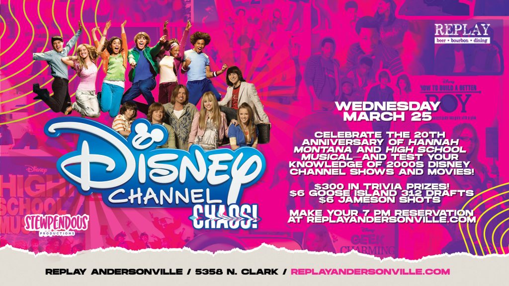 We’re all in this together! Get ready for a nostalgic night of Disney Channel Chaos as we celebrate 20 years of your favorite 2000s Disney Channel shows and movies. Play trivia for your shot at $300 in prizes. Hosted by Stew!