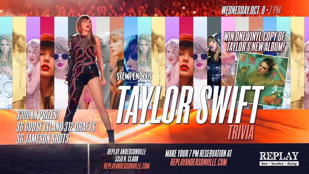 💿 One lucky fan will win a vinyl copy of Taylor’s brand-new album! Plus, we’re giving away $300 in prizes, with $6 Goose Island 312 drafts and $6 Jameson shots keeping the night fueled.